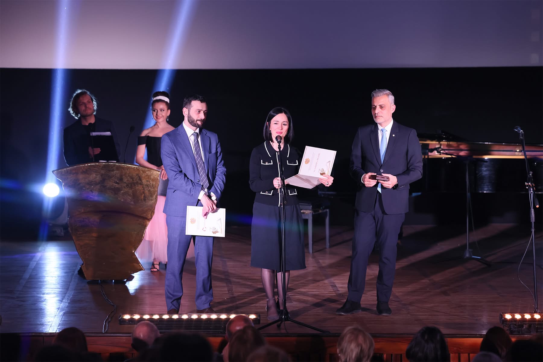 Պարգևները հանձնել է ԿԳՄՍ նախարար Ժաննա Անդրեասյանը: Պարգևատրման արարողությանը ներկա է եղել նաև նախարարի տեղակալ Դանիել Դանիելյանը: Միջոցառումը տեղի է ունեցել Հայաստանի կինոգործիչների միության կազմակերպած Պրոֆեսիոնալ գիլդիաների 2-րդ մրցանակաբաշխության շրջանակում:
