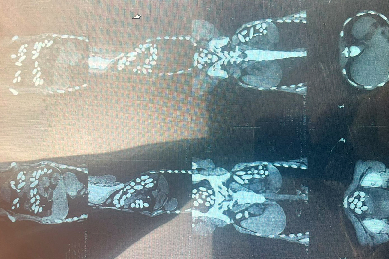 Բժշկական կենտրոնում իրականացված համակարգչային շերտագրման` սկանավորման արդյունքում պարզվել է, որ նրա հաստ աղիքի հատվածում առկա են գնդաձև օտար մարմիններ, որոնք վերջինիս մարմնից դուրս են բերվել բժշկական տարբեր միջամտությունների արդյունքում: Հայտնաբերվել է «կոկաին» տեսակի թմրամիջոցին նմանվող 120 հատ օվալաձև պարկուճ, այդ զանգվածների ընդհանուր քաշը կազմել է 1216 գրամ։ Հայտնաբերված թմրամիջոցի շուկայական արժեքը գերազանցել է 300 հազար ԱՄՆ դոլարը։